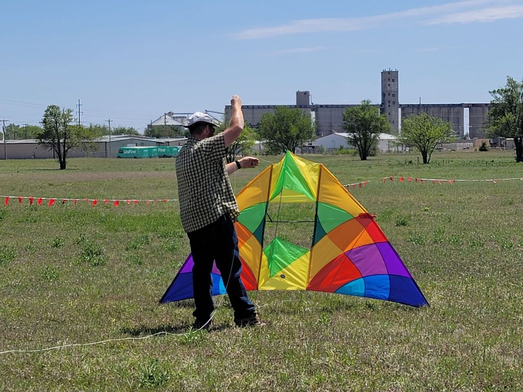 Sunday dawned partly cloudy, but less windy, here in Enid! 😎 After a delicious breakfast at Wee Too, it was back to the Richard Dermer Memorial Kite Field. 🪁 Bear started off with banners, naturally, and then we put up my Rok. A wonderful birthday gift from our friend Paul Woodard, during Convention last October! 🎁 It was soon joined by two more, and a little line-crossing action happened🪢but the guys got it straightened out, and were soon on to bigger and brighter things! 🪁 The wind was up and down all day, but everyone kept at it, putting up one style after another. The sky was beautiful, as the clouds burned off throughout the day. 🌥 But Bear has to work Monday, and we had a 2.5 hour drive home, so it was time to pack up and head out. We’ll be back soon, though 😉 Our final stop was a little dinner on the way home. 🐼